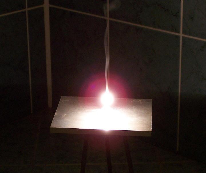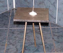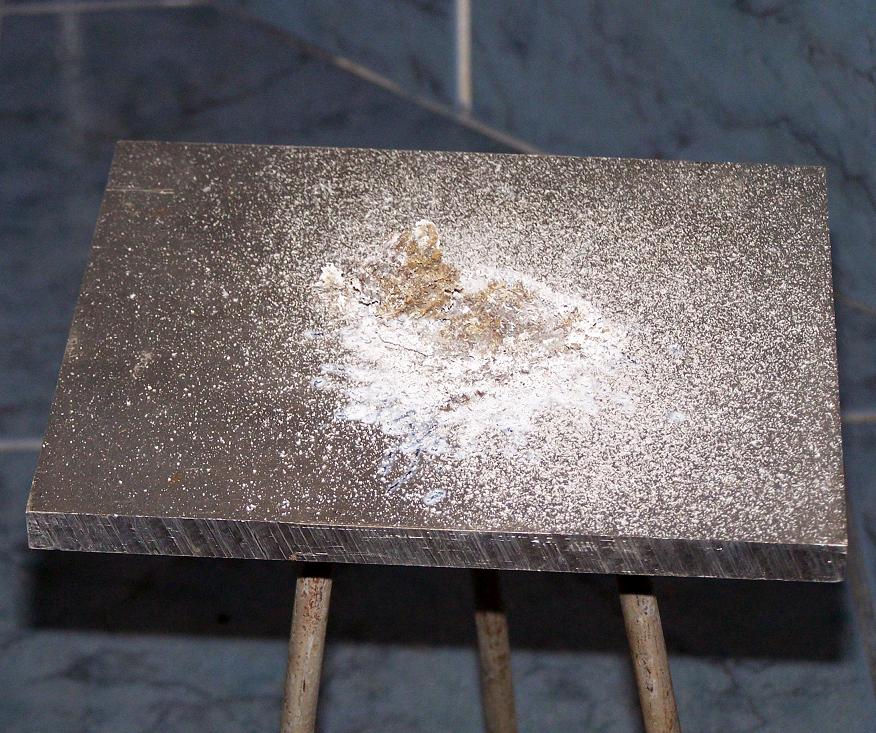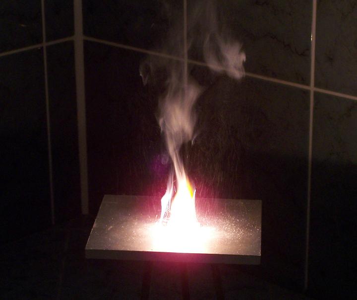 Bardziej efektowną metodą przeprowadzenia eksperymentu jest zapalenie mieszaniny na powietrzu. W tym celu na metalowej płycie usypujemy z reagentów mały kopczyk i w jego szczyt wkładamy odcinek wstążki magnezowej. Tą metodą otrzymamy mniejszy udział krzemku magnezu w produktach reakcji ale warto, zwłaszcza gdy eksperyment ogląda więcej osób.