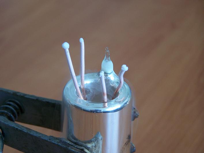 Druciki, pomimo ogrzewania ich przez powietrze są silnie ochładzane przez azot i zaczyna się na nich krystalizować para wodna z powietrza.