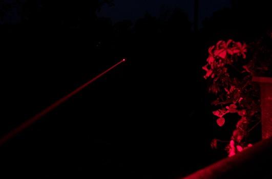 A tutaj wyszedłem na balkon i świeciłem po okolicy. Niestety nie da się tego dobrze sfotografować ale laser ten oświetla nawet chmury. Efekt jest niesamowity.