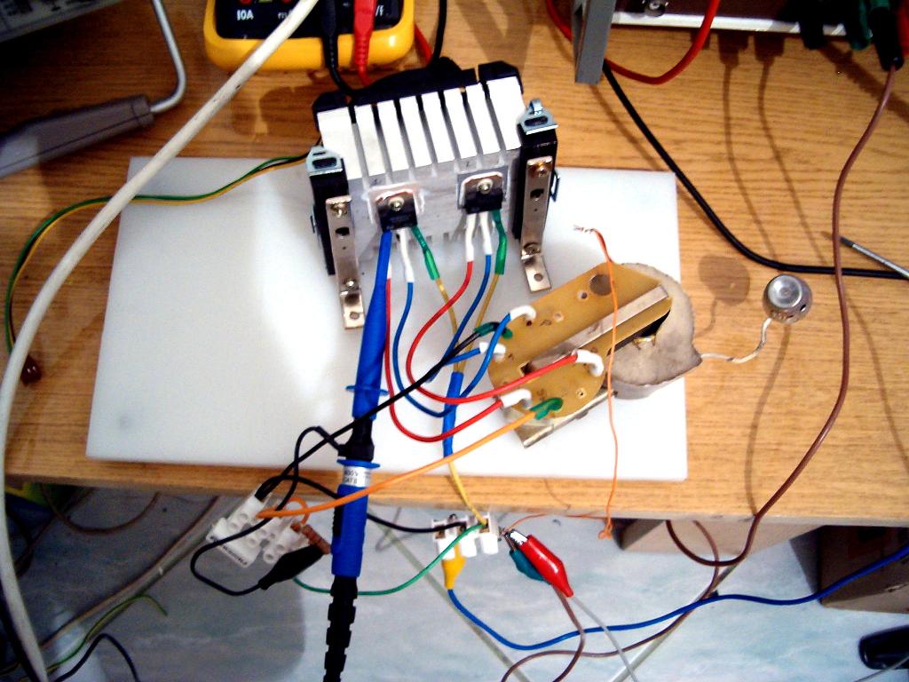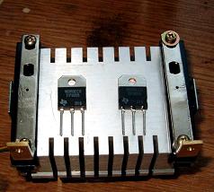 Bardzo ważne jest aby podczas montarzu tranzystorów na radiatorze, zastosować podkładki mikowe. W celu lepszego odprowadzania ciepła, tranzystor od strony spodniej posiada metalową blaszkę, która połączona jest z kolektorem. Jeśli nie zastosujemy podkłatki, kolektory z obu tranzystorów zostaną zwarte. Przed przykręceniem tranzystorów, nalezy je jeszcze posmarować termoprzewodzącą pastą silokonową.
