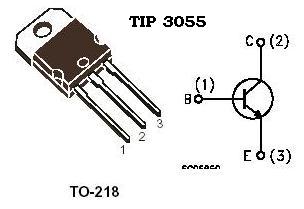 Gdy mamy gotowe dwa podstawowe elementy generatora możemy już przystąpić do wykonywania połączeń elektrycznych. Po lewej opis wyprowadzeń tranzystora TIP 3055. zgodnie z nim łączymy kolektory i bazy tranzystorów z odpowiednimi zakończeniami uzwojeń transformatora. Emitery obu tranzystorów zwieramy do masy. Teraz wystarczy tylko wykonać dzielnik napięcia z dwych rezystorów 220 i 27 ohm a zakończenia połączyć ze środkowymi odczepami obu uzwojeń pierwotnych i mamy gotowy generator w wersji surowej. Można przystąpić do wstępnych testów.